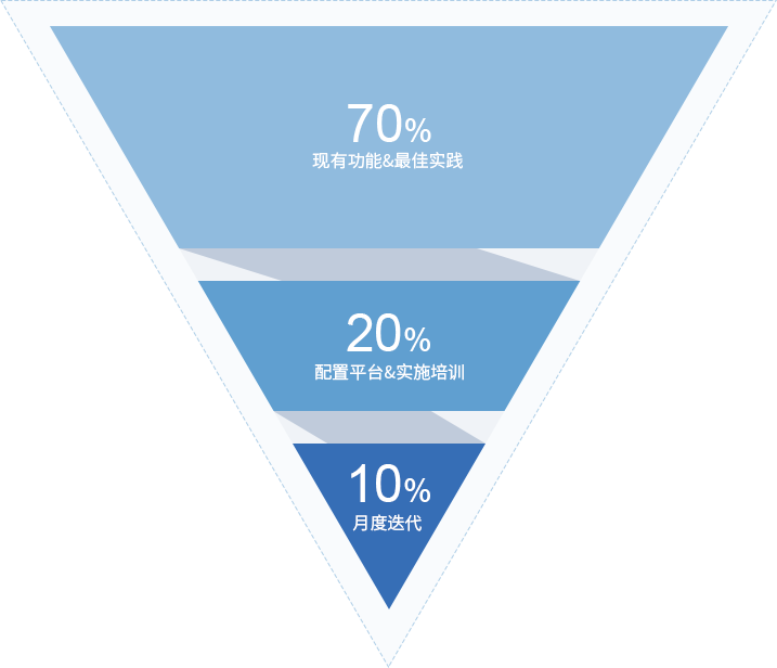 高度可配置平台支持基础应用快速实施、上线 项目管理遵循PMI实施管理国际标准 成熟的项目风险管控方法论